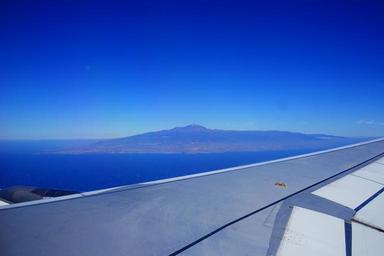 Keywords: fly aircraft wing sky clouds blue tenerife teide mountain volcano pico del teide el teide canary islands spain island aerial view