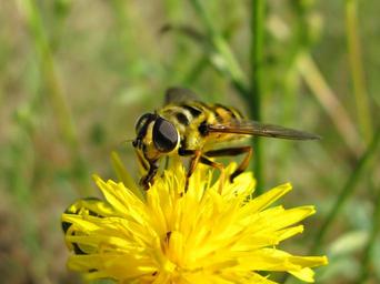 Keywords: fly bee insect flowers dandelion summer meadow colors yellow macro
