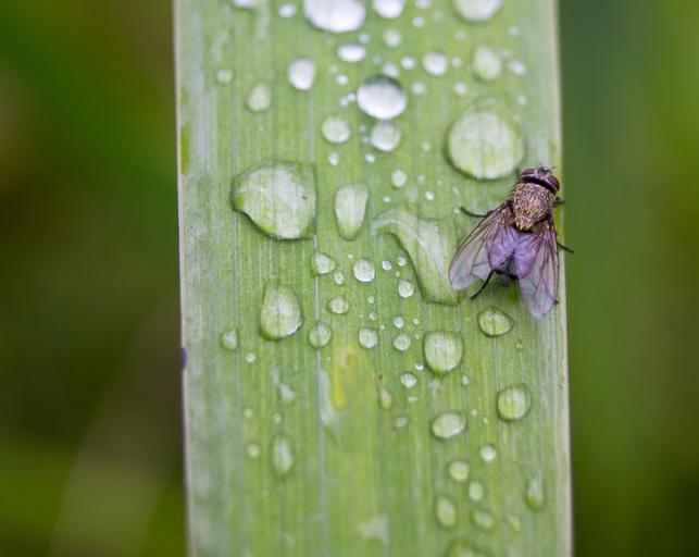 Keywords: fly drip water leaf drop of water inekt green rain dew nature macro grasses flora reed
