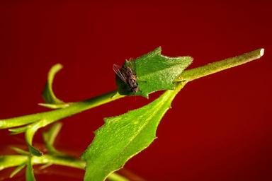 Keywords: fly insect wing leaf nature green red animal close housefly spieglung background wallpaper