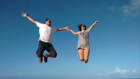 Keywords: fly love blue sky casal people jump