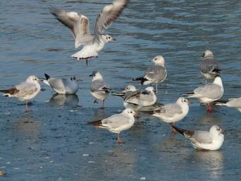 Keywords: fly start take off landing wing beat gulls birds waser animals pushed together swim