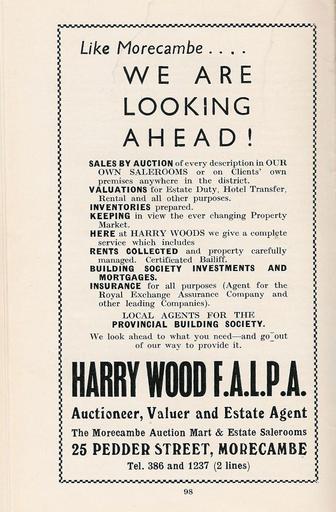 Keywords: morecambe flyer advert morecambememories harrywood faip auctioneer pedderst