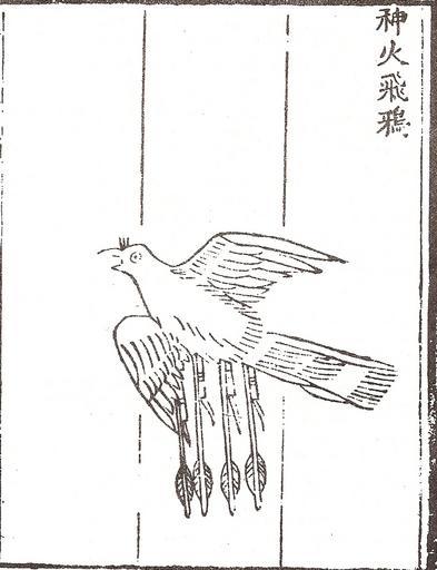 | Keywords: 'Flying Crow With Magic Fire', a winged rocket bomb.jpg The 'Flying Crow with Magic Fire' an aerodynamic winged rocket bomb from the Chinese military compendium of the Fire Drake Manual or Huolongjing written in the mid 14th century with a preface added in 1412 Joseph Needham writes The idea was doubtless derived from the use of expendable birds carrying glowing tinder wherewith to set on fire the roofs of the enemy city But the provisions of wings or fins for increasing aerodynamic stability long preceded anything of the same kind elsewhere in the world And the provision of an explosive payload was also a new development Caption from page 501 figure 208 Joseph Needham's Science and Civilization in China Volume 5 Part 7 Military Technology; the Gunpowder Epic 1986 Taipei Caves Books Ltd Early Ming Dynasty second half of the 14th century Jiao Yu and Liu Ji PD-old-100 Huolongjing Rockets in art |