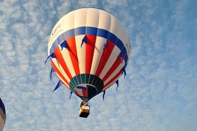 Keywords: flying hot air balloon balloon red white blue hot air