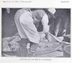 | Keywords: FMIB 33302 Cutting Out the Roe of a Sturgeon.jpeg check categories 14 August 2015 3 Cutting Out the Roe of a Sturgeon Subject Fishes--Eggs Sturgeon fisheries Tag Commercial Fisheries 1899 Cite book Sturgeon fishery of Delaware River and Bay Cobb John N Washington DC Government Printing Office 1900 Report of the United States Commissioner of Fisheries 1899 Plate 21a Creator John Nathan Cobb PD-UWASH-FMIB Institution University of Washington FMIB-source accession number 33302 Images from the Freshwater and Marine Image Bank to check Fish eggs Fisheries Photographs by John Nathan Cobb |