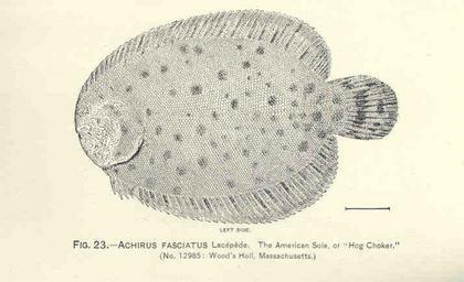 | Keywords: FMIB 33644 Achirus Fasciatus La Cepede, M le comte de (Bernard Germain Etienne de La Ville sur Illon), 1756-1825.jpeg Achirus Fasciatus La Cepede M le comte de Bernard Germain Etienne de La Ville sur Illon 1756-1825 American Sole or La CeHog Chokere comt; Left side Subject Soleidae Flatfishes Tag Fish 1886 Cite book Review of the Flounders and Soles Pleuronectidae of America and Europe Jordan David Starr Washington DC Government Printing Office 1889 Report of the Commissioner United States Commission of Fish and Fisheries 1886 Plate IXc Creator David Starr Jordan PD-UWASH-FMIB Institution University of Washington FMIB-source accession number 33644 Images from the Freshwater and Marine Image Bank to check Trinectes maculatus David Starr Jordan |