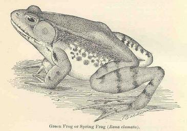 | Keywords: FMIB 33781 Green Frog or Spring Frog.jpeg check categories 18 September 2015 2 Green Frog or Spring Frog Rara Clamata Subject Frogs Tag Amphibians 1896/1897 Cite book Notes on the Edible Frogs of the United States and Their Artificial Propagation Report of the Commissioner United States Commission of Fish and Fisheries 1896/1897 Chamberlain F M Washington DC Government Printing Office 1898 256 F M Chamberlain PD-UWASH-FMIB Institution University of Washington FMIB-source accession number 33781 Images from the Freshwater and Marine Image Bank to check F M Chamberlain Frogs in art |