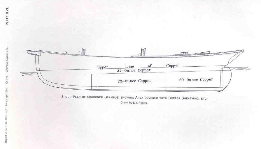 Keywords: FMIB 34062 Grampus.jpeg check categories 18 September 2015 4 Grampus Sheer Plan of Schooner Grampus Showing Area Covered with Copper Sheathing Etc Subject Grampus Schooner Schooners--Design and construction Naval architecture Tag Vessels 1887 Cite book Report Upon the Operations of the U S Fish Commission Schooner Grampus from March 15 1887 to June 30 1888 Report of the Commissioner United States Commission of Fish and Fisheries 1887 Collins J W Washington DC Government Printing Office 1891 Plate XVI E I Rogers PD-UWASH-FMIB Institution University of Washington FMIB-source accession number 34062 Images from the Freshwater and Marine Image Bank to check E I Rogers Grampus Schooners Naval architecture |