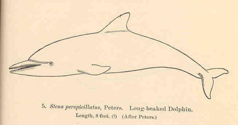 Keywords: FMIB 34100 Steno perspicillatus, Peters Long-beaked Dolphin.jpeg Steno perspicillatus Peters Long-beaked Dolphin Length 8 feet After Peters Subject Stenella longirostris Dolphins Tag Aquatic Mammals 1883 Cite book Suggestions to the keepers of the U S Lifesaving stations light-houses and light-ships and to other observers relative to the best means of collecting and preserving specimens of whales and porpoises True Frederick W Washington DC Government Printing Office 1885 Report of the Commissioner United States Commission of Fish and Fisheries 1883 Plate II-5 Creator Frederick W True PD-UWASH-FMIB Institution University of Washington FMIB-source accession number 34100 Frederick W True Steno bredanensis Marine mammals Drawings of dolphins |