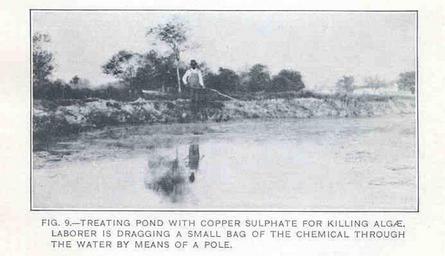 View Original:FMIB_35033_Treating_pond_with_copper_sulphate_for_killing_algae_Laborer_is_dragging_a_small_bag_of_the_chiemical_through_the_water_by_means.jpeg (693x399)