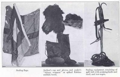 | Keywords: FMIB 35525 Sealing Flags - Author's Cap and Gloves, and Sealer's 'Skinny Woppers' or Spiked Eskimo Sealskin Boots - Sealing Equipment.jpeg check categories 17 August 2015 3 Sealing Flags Author's Cap and Gloves and Sealer's 'Skinny Woppers' or Spiked Eskimo Sealskin Boots Sealing Equipment Consisting of Gaff Belt with Sculping-Knife and Steel and Tow-Ropes Subject Sealing--Equipment and Supplies Tag Aquatic Mammals 1924 Cite book Vikings of the Ice Being the Log of a Tenderfoot on the Great Newfoundland Seal Hunt England George Allan Garden City NY Doubleday Page Company 1924 Facing page 4 Creator George Allan England PD-UWASH-FMIB Institution University of Washington FMIB-source accession number 35525 Images from the Freshwater and Marine Image Bank to check George Allan England Seal hunting Marine mammals |