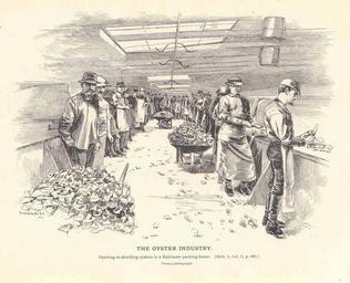 | Keywords: FMIB 35840 Oyster Industry.jpeg check categories 15 August 2015 2 Oyster Industry Opening or shucking oysters in a Baltimore packing-house Subject Oyster fisheries Shellfish trade Tag Shellfish 1887 Cite book Fisheries and Fishery Industries of the United States Section V History and Methods of the Fisheries v 2 Goode George Brown Washington DC Government Printing Office 1887 Plate 242 Creator George Brown Goode PD-UWASH-FMIB Institution University of Washington FMIB-source accession number 35840 Images from the Freshwater and Marine Image Bank to check The Fisheries and Fishery Industries of the United States Oyster culture |