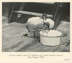 | Keywords: FMIB 36399 Sacred Ibises (About 2 Months Old) from Dassen Island.jpeg Sacred Ibises About 2 Months Old from Dassen Island Subject Ibises Tag Water Birds 1908 Cite book Three Voyages of a Naturalist Being an Account of Many Little-Known Islands in Three Oceans Visited by the 'Valhalla' R Y S Nicoll M J London England Whitherby Co 1908 Facing page xxiii Creator Michael John Nicoll PD-UWASH-FMIB Institution University of Washington FMIB-source accession number 36399 Images from the Freshwater and Marine Image Bank to check Michael John Nicoll Threskiornis aethiopicus captive Dassen Island Pelecaniformes of South Africa |