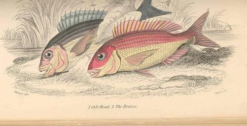 | Keywords: FMIB 36403 Gilt Head (1); Braize (2).jpeg check categories 26 August 2015 2 Gilt Head 1 ; Braize 2 Subject Sparidae Pagrosomus Tag Fish 1866 Cite book British Fishes Part I Hamilton Robert London England Chatto and Windus 1866 Naturalist's Library vol 36 Facing page 172 Creator Robert Hamilton PD-UWASH-FMIB Institution University of Washington FMIB-source accession number 36403 Images from the Freshwater and Marine Image Bank to check Robert Hamilton Sparidae | ||||