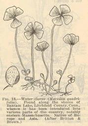 Keywords: FMIB 37591 Water clover (Marsilea quadrifolia).jpeg check categories 16 August 2015 2 Water clover Marsilea quadrifolia Found along the shores of Bantam Lake Litchfield County Conn whence it has been introudced into various parts of the country notably eastern Massachusetts Native of Europe and Asia After Britton Brown Subject Marsilea Tag Aquatic Botany 1924 Cite book Aquatic Plants in Pond Culture Titcomb John W Washington DC Government Printing Office 1924 Report of the United States Commissioner of Fisheries for the Fiscal Year 1923 with Appendices Fig 18 Creator John Wheelock Titcomb PD-UWASH-FMIB Institution University of Washington FMIB-source accession number 37591 Images from the Freshwater and Marine Image Bank to check John Wheelock Titcomb Marsilea