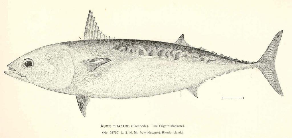 Keywords: FMIB 37842 Auxis Thazard (Lacepede) Frigate Mackerel.jpeg check categories 18 September 2015 3 Auxis Thazard Lacepede Frigate Mackerel Subject Auxis Tag Fish 1887 Cite book Review of the Mackerels Scombbinae of America and Europe Bulletin of the United States Fish Commission v 7 1887 Dressler Fletcher B ; Fesler Bert Washington DC Government Printing Office 1889 Plate III Fletcher B Dressler Bert Fesler PD-UWASH-FMIB Institution University of Washington FMIB-source accession number 37842 Images from the Freshwater and Marine Image Bank to check Fletcher B Dressler Bert Fesler Auxis |