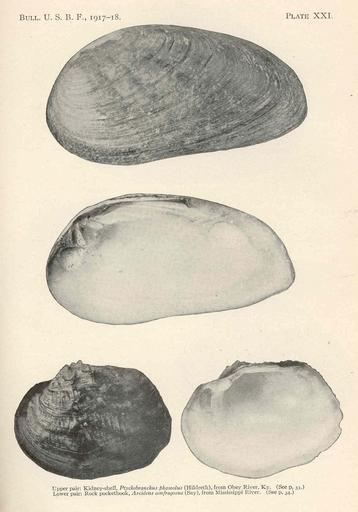 Keywords: FMIB 38271 Kidney-shell, Ptychobranchus phaseolus (Hildreth), from Obey River, Ky, upper pair; Rock pocketbook, Arcidens confragosus (Say.jpeg check categories 26 August 2015 4 Kidney-shell Ptychobranchus phaseolus Hildreth from Obey River Ky upper pair; Rock pocketbook Arcidens confragosus Say from Mississippi River lower pair Subject Ptychobranchus Arcidens Freshwater mussels Tag Shellfish 1921 Cite book Fresh-water Mussels and Mussel Industries of the United States Coker Robert E Washington DC Government Printing Office 1921 Bulletin of the United States Bureau of Fisheries vol 36 1917-1918 Plate XXI Creator Robert Ervin Coker PD-UWASH-FMIB Institution University of Washington FMIB-source accession number 38271 Images from the Freshwater and Marine Image Bank to check Robert Ervin Coker Ptychobranchus Arcidens Shellfish |