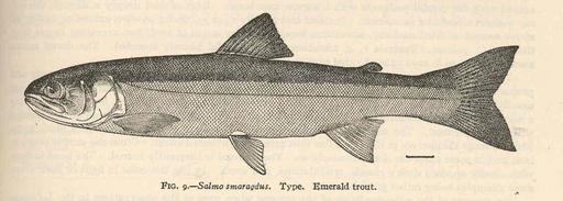 | Keywords: FMIB 38971 Salmo smaragdus Type Emerald trout.jpeg Salmo smaragdus Type Emerald trout Subject Salmo smaragdus Trout Tag Fish 1918 Cite book Fishes of the Lahontan System of Nevada and Northeastern California Snyder John Otterbein Washington DC Government Printing Office 1918 Bulletin of the United States Bureau of Fisheries vol 35 1915-1916 Fig 9 Creator John Otterbein Snyder PD-UWASH-FMIB Institution University of Washington FMIB-source accession number 38971 Images from the Freshwater and Marine Image Bank to check John Otterbein Snyder Oncorhynchus mykiss |