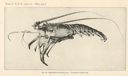 | Keywords: FMIB 39039 Spiny lobster, Panulirus argus Lateral view of adult male.jpeg check categories 19 September 2015 4 Spiny lobster Panulirus argus Lateral view of adult male Subject Caribbean spiny lobster Panulirus Tag Shellfish 1923 Cite book Spiny Lobster Panulirus argus of Southern Florida Its Natural History and Utilization Bulletinof the United States Bureau of Fisheries vol 38 1921-1922 Crawford D R ; Smidt W J J De Washington DC Government Printing Office 1923 Fig 266 D R Crawford W J J De Smidt PD-UWASH-FMIB Institution University of Washington FMIB-source accession number 39039 Images from the Freshwater and Marine Image Bank to check D R Crawford W J J De Smidt Panulirus argus Shellfish |