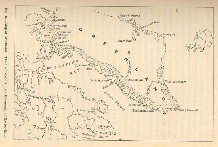 | Keywords: FMIB 39493 Map of Greenland The arrow-points mark the margin of the ice-field.jpeg Map of Greenland The arrow-points mark the margin of the ice-field Subject Greenland--Maps Glaciers--Greenland--Maps Geographic Subject Greenland Tag Polar 1892 Cite book Man and the Glacial Period Wright G Frederick New York D Appleton and Company 1892 International Scientific Series vol 69 Fig 15 Creator George Frederick Wright PD-UWASH-FMIB Institution University of Washington FMIB-source accession number 39493 Images from the Freshwater and Marine Image Bank to check George Frederick Wright geologist Maps of Greenland 1892 maps |
