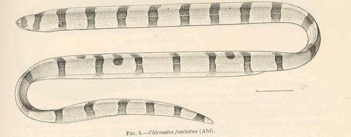 | Keywords: FMIB 39631 Chlevastes fasciatus (Ahl).jpeg Chlevastes fasciatus Ahl Subject Eels Chlevastes Tag Fish 1906 of the Species Found in the Archipelago with a Provisional Check-List of the Fishes of Oceania Jordan David Starr; Seale Alvin Washington DC Government Printing Office 1906 Bulletin of the Bureau of Fisheries v 25 1905 Fig 5 Creator David Starr Jordan Creator Alvin Seale PD-UWASH-FMIB Institution University of Washington FMIB-source accession number 39631 Images from the Freshwater and Marine Image Bank to check David Starr Jordan Alvin Seale Myrichthys colubrinus |