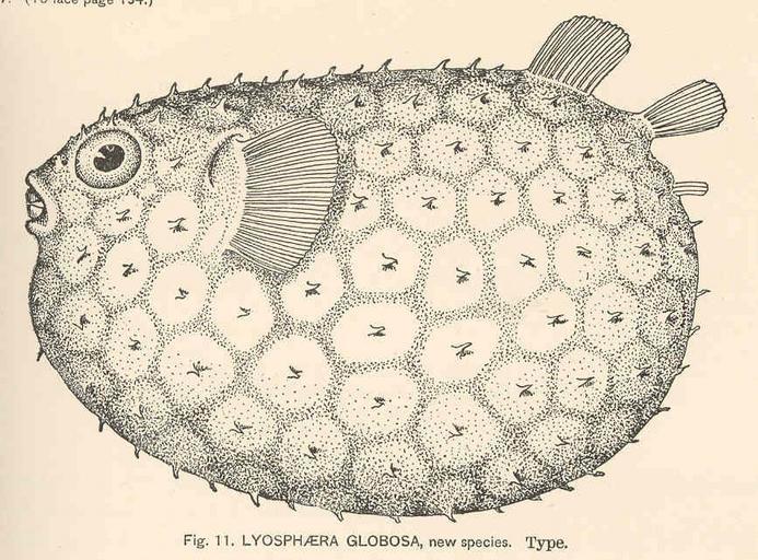 Keywords: FMIB 39773 Lyosphaera globosa, new species Type.jpeg check categories 15 September 2015 4 Lyosphaera globosa new species Type Subject Diodontidae Lyosphaera Tag Fish 1898 s of New or Little-Known Genera and Species of Fishes from the United States Evermann Barton W ; Kendall William C Washington DC Government Printing Office 1898 Bulletin of the United States Fish Commission vol 17 1897 Plate 9-11 Creator Barton Warren Evermann Creator William Converse Kendall PD-UWASH-FMIB Institution University of Washington FMIB-source accession number 39773 Images from the Freshwater and Marine Image Bank to check Barton Warren Evermann Drawings of fish by William Converse Kendall Diodontidae Lyosphaera |