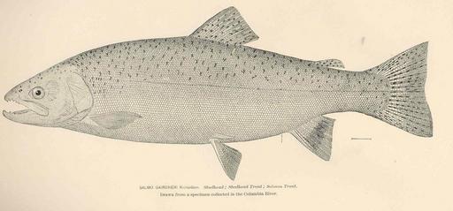 | Keywords: FMIB 39943 Salmo gairdneri Richardson Steelhead; Steelhead Trout; Salmon Trout Drawn from a specimen collected in the Columbia River.jpeg check categories 19 September 2015 2 Salmo gairdneri Richardson Steelhead; Steelhead Trout; Salmon Trout Drawn from a specimen collected in the Columbia River Subject Rainbow trout Tag Fish 1897 Cite book Artificial Propagation of Salmon on the Pacific Coast of the United States with Notes on the Natural History of the Quinnat Salmon Bulletin of the United States Fish Commission vol 16 1896 Stone Livingston Washington DC Government Printing Office 1897 Plate 84 Livingston Stone PD-UWASH-FMIB Institution University of Washington FMIB-source accession number 39943 Images from the Freshwater and Marine Image Bank to check Livingston Stone Oncorhynchus mykiss |