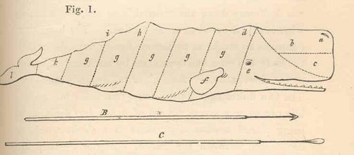 | Keywords: FMIB 40389 -Sperm whale- - Outline of the entire form- a, the nostril or spout-hole; b, the situation of the case; c, the junk; d, the.jpeg check categories 17 August 2015 4 Sperm whale Outline of the entire form a the nostril or spout-hole; b the situation of the case; c the junk; d the bunch of the neck; e the eye; f the fin; g the spiral strips or blanket pieces; h the hump; i the ridge; h the small; l the tail or flukes; B a harpoon; C a lance Subject Sperm whale Spears Harpoons Tag Aquatic Mammals 1839 Cite book Natural History of the Sperm Whale Beale Thomas London England John van Voorst 1839 23 Creator Thomas Beale PD-UWASH-FMIB Institution University of Washington FMIB-source accession number 40389 Images from the Freshwater and Marine Image Bank to check Thomas Beale Physeter macrocephalus Harpoons Marine mammals |