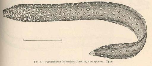 | Keywords: FMIB 41020 Gymnothorax leucostictus Jenkins, new species Type.jpeg Gymnothorax leucostictus Jenkins new species Type Subject Morays Gymnothorax Tag Fish 1904 s of New Species Jenkins Oliver P Washington DC Government Printing Office 1904 Bulletin of the United States Fish Commission vol 22 1902 Fig 5 Creator Oliver Peebles Jenkins PD-UWASH-FMIB Institution University of Washington FMIB-source accession number 41020 Images from the Freshwater and Marine Image Bank to check Oliver Peebles Jenkins Gymnothorax meleagris |