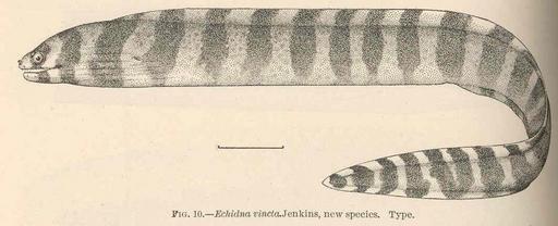| Keywords: FMIB 41026 Echidna vincta Jenkins, new species Type.jpeg Echidna vincta Jenkins new species Type Subject Morays Gymnothorax Tag Fish 1904 s of New Species Jenkins Oliver P Washington DC Government Printing Office 1904 Bulletin of the United States Fish Commission vol 22 1902 Fig 10 Creator Oliver Peebles Jenkins PD-UWASH-FMIB Institution University of Washington FMIB-source accession number 41026 Images from the Freshwater and Marine Image Bank to check Oliver Peebles Jenkins Echidna polyzona |