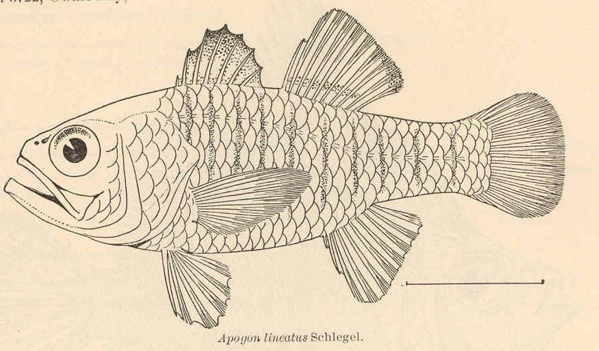 Keywords: FMIB 41116 Apogon lineatus Schlegel.jpeg Apogon lineatus Schlegel Subject Apogon Tag Fish 1904 s of New Species and a Review of the Japanese Macrouridae Jordan David Starr; Starks Edwin Chapin Washington DC Government Printing Office 1904 Bulletin of the United States Fish Commission vol 22 1902 585 Creator David Starr Jordan Creator Edwin Chapin Starks PD-UWASH-FMIB Institution University of Washington FMIB-source accession number 41116 Images from the Freshwater and Marine Image Bank to check David Starr Jordan Edwin Chapin Starks Apogon lineatus |