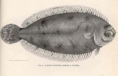 | Keywords: FMIB 41166 Alaeops plinthus Jordan & Starks.jpeg Alaeops plinthus Jordan Starks Subject Alaeops Tag Fish 1904 s of New Species and a Review of the Japanese Macrouridae Jordan David Starr; Starks Edwin Chapin Washington DC Government Printing Office 1904 Bulletin of the United States Fish Commission vol 22 1902 Plate 5-2 Creator David Starr Jordan Creator Edwin Chapin Starks PD-UWASH-FMIB Institution University of Washington FMIB-source accession number 41166 Images from the Freshwater and Marine Image Bank to check David Starr Jordan Edwin Chapin Starks Poecilopsetta plinthus |