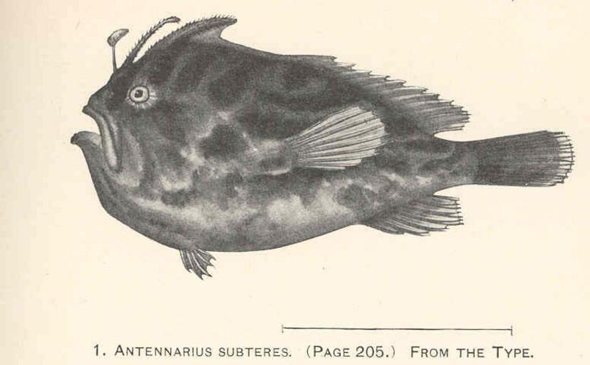 | Keywords: FMIB 41232 Antennarius subteres From the type.jpeg Antennarius subteres From the type Subject Antennarius Tag Fish 1912 Cite book New Pediculate Fishes from the Philippine Islands and Contiguous Waters Radcliffe Lewis Washington DC Government Printing Office 1912 Proceedings of the United States National Museum vol 42 Plate 17-1 Creator Lewis Radcliffe PD-UWASH-FMIB Institution University of Washington FMIB-source accession number 41232 Images from the Freshwater and Marine Image Bank to check Lewis Radcliffe Nudiantennarius subteres |