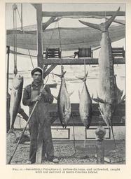 | Keywords: FMIB 42095 Swordfish (Tetraplurus), yellow-fin tuna, and yellowtail, caught with rod and reel at Santa Catalina Island.jpeg check categories 7 September 2015 3 Swordfish Tetraplurus yellow-fin tuna and yellowtail caught with rod and reel at Santa Catalina Island Subject Fishers Tag Sport Fishing 1910 Cite book Sport Fishing in California and Florida Holder Charles F Washington DC Government Printing Office 1910 Bulletin of the Bureau of Fisheries vol 28 1908 Part 1 Plate VI-11 Creator Charles Frederick Holder PD-UWASH-FMIB Institution University of Washington FMIB-source accession number 42095 Images from the Freshwater and Marine Image Bank to check Charles Frederick Holder Fishermen Recreational fishing |