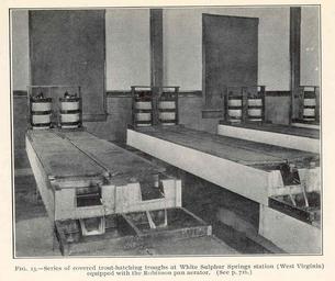 | Keywords: FMIB 42207 Series of covered trout-hatching troughs at White Sulphur Springs station (West Virginia) equipped with the Robinson pan aerator.jpeg check categories 17 August 2015 4 Series of covered trout-hatching troughs at White Sulphur Springs station West Virginia equipped with the Robinson pan aerator Subject Fish hatcheries--Equipment and supplies White Sulphur Springs West Virginia Geographic Subject United States--West Virginia--White Sulphur Springs Tag Hatcheries 1910 Cite book Fish-Cultural Practices in the United States Bureau of Fisheries Titcomb John W Washington DC Government Printing Office 1910 Bulletin of the Bureau of Fisheries vol 28 1908 Part 2 Plate LXXXIII-13 Creator John Wheelock Titcomb PD-UWASH-FMIB Institution University of Washington FMIB-source accession number 42207 Images from the Freshwater and Marine Image Bank to check John Wheelock Titcomb Fishing equipment White Sulphur Springs West Virginia Fish hatcheries |