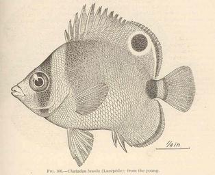 | Keywords: FMIB 42520 Chaetodon lunula (Lacepede); from the young.jpeg Chaetodon lunula Lacepede ; from the young Subject Chaetodontidae Tag Fish 1905 Cite book Shore Fishes of the Hawaiian Islands with a General Account of the Fish Fauna Jordan David Starr; Evermann Barton Warren Washington DC Government Printing Office 1905 Bulletin of the United States Fish Commission vol 23 for 1903 part I Fig 160 Creator David Starr Jordan Creator Barton Warren Evermann PD-UWASH-FMIB Institution University of Washington FMIB-source accession number 42520 Images from the Freshwater and Marine Image Bank to check David Starr Jordan Barton Warren Evermann Chaetodon lunula |