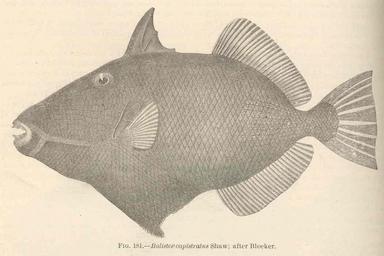 | Keywords: FMIB 42539 Balistes capistratus Shaw; after Bleeker.jpeg Balistes capistratus Shaw; after Bleeker Subject Balistidae Tag Fish 1905 Cite book Shore Fishes of the Hawaiian Islands with a General Account of the Fish Fauna Jordan David Starr; Evermann Barton Warren Washington DC Government Printing Office 1905 Bulletin of the United States Fish Commission vol 23 for 1903 part I Fig 181 Creator David Starr Jordan Creator Barton Warren Evermann PD-UWASH-FMIB Institution University of Washington FMIB-source accession number 42539 Images from the Freshwater and Marine Image Bank to check David Starr Jordan Barton Warren Evermann Sufflamen fraenatum |