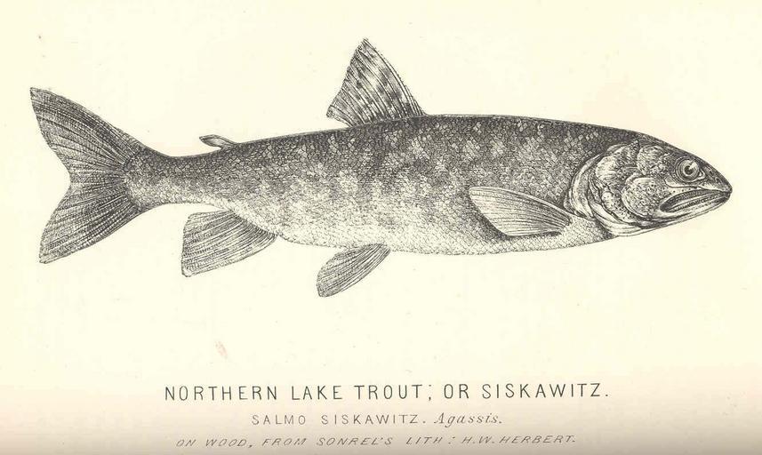 | Keywords: FMIB 44051 Northern Lake Trout, or Siskawitz - Salmo siskawitz, Agassis.jpeg Northern Lake Trout or Siskawitz Salmo siskawitz Agassis Subject Lake trout Tag Fish 1851 Cite book Frank Forester's Fish and Fishing of the United States and British Provinces of North America Herbert Henry William New York NY Stringer Townsend 1851 Facing page 112 Creator Henry William Herbert PD-UWASH-FMIB Institution University of Washington FMIB-source accession number 44051 Images from the Freshwater and Marine Image Bank to check Henry William Herbert Salvelinus namaycush |