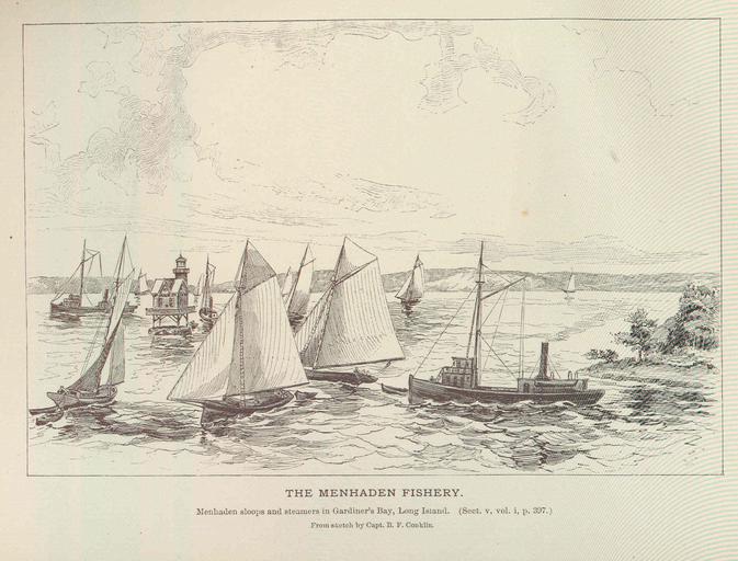 | Keywords: FMIB 45924 Menhaden Fishery.jpeg check categories 8 September 2015 5 Menhaden Fishery Menhaden sloops and steamers in Gardiner's Bay Long Island Subject Menhaden fisheries Steamboats Sloops Geographic Subject United States--New York State --Long Island Tag Vessels 1887 Cite book Fisheries and Fishery Industries of the United States Goode George Brown Washington DC Government Printing Office 1887 Plate 104 Creator Benjamin Franklin Conklin PD-UWASH-FMIB Institution University of Washington FMIB-source accession number 45924 Images from the Freshwater and Marine Image Bank to check Benjamin Franklin Conklin Menhaden fisheries Steamboats Sloops Town of East Hampton New York |