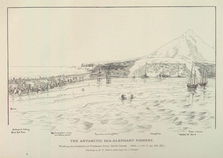 Keywords: FMIB 46007 Antarctic Sea-Elephant Fishery.jpeg check categories 19 September 2015 5 Antarctic Sea-Elephant Fishery Working sea-elephants at Northeast Point Herd's Island Subject Heard Island Antarctica Elephant seals Geographic Subject Antarctica--Heard Island Tag Aquatic Mammals 1887 Cite book Fisheries and Fishery Industries of the United States Goode George Brown Washington DC Government Printing Office 1887 Plate 228 Creator Henry Wood Elliott H C Chester PD-UWASH-FMIB Institution University of Washington FMIB-source accession number 46007 Images from the Freshwater and Marine Image Bank to check Henry W Elliott H C Chester Heard Island Mirounga Marine mammals |