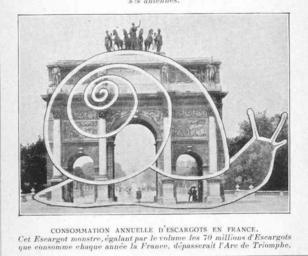 | Keywords: FMIB 47200 Consommation Annuelle d'Escargots en France.jpeg check categories 16 September 2015 3 Consommation Annuelle d'Escargots en France Cet Escargot monstre egalant par le volume les 70 millions d'Escargots que consomme chaque annee la france depasserait l'Arc de Triomph Subject Snails--Utilization Edible snails--Utilization Tag Mollusks 1911 Cite book l'Escargot Elevage et Parcage Lucratifs preparation culinaire et vente Boisseau G ; Lanorville G Paris France Librairie Hachette 1911 Plate 1b Creator G Boisseau Creator Georges Lanorville PD-UWASH-FMIB Institution University of Washington FMIB-source accession number 47200 Images from the Freshwater and Marine Image Bank to check G Boisseau Georges Lanorville Mollusca |