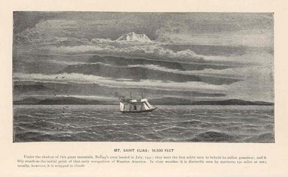 | Keywords: FMIB 47655 Mt Saint Elias- 19,500 Feet.jpeg check categories 21 August 2015 3 Mt Saint Elias 19 500 Feet Under the shadow of this great mountain Bering's crew landed in July 1741; they were the first white men to behold its sullen grandeur and it fitly stands as the initial point of that early recognition of Russian America In clear weather it is distinctly seen by mariners 150 miles at sea; usually however it is wrapped in clouds Subject Saint Elias Mount Alaska and Yukon Mountains--Alaska Geographic Subject United States--Alaska--Saint Elias Mount Canada--Yukon--Saint Elias Mount Tag Polar 1897 00 Cite book Our Arctic Province Alaska and the Seal Islands Elliott Henry W New York City NY Charles Scribner's Sons 1897 Library of Contemporary Exploration and Adventure Facing page 73 Creator Henry Wood Elliott PD-UWASH-FMIB Institution University of Washington FMIB-source accession number 47655 Images from the Freshwater and Marine Image Bank to check Henry W Elliott Mountains of Alaska Polar |