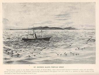 | Keywords: FMIB 47658 St George's Island, Pribylov Group.jpeg check categories 21 August 2015 3 St George's Island Pribylov Group Viewed from a point at sea about 7 miles E N E off Tolstoi Mees; these characteristic swarms of waterfowl arries and choochkies stirred up by an approach of the steamer encircle the whole island in this manner and give notice to a mariner in thick weather of the proximity of that island long before it can be seen Subject Saint George Alaska Islands--Alaska Water birds--Alaska Geographic Subject United States--Alaska--Saint George Tag Coasts 1897 00 Cite book Our Arctic Province Alaska and the Seal Islands Elliott Henry W New York City NY Charles Scribner's Sons 1897 Library of Contemporary Exploration and Adventure Facing page 227 Creator Henry Wood Elliott PD-UWASH-FMIB Institution University of Washington FMIB-source accession number 47658 Images from the Freshwater and Marine Image Bank to check Henry W Elliott Saint George Saint George Alaska |