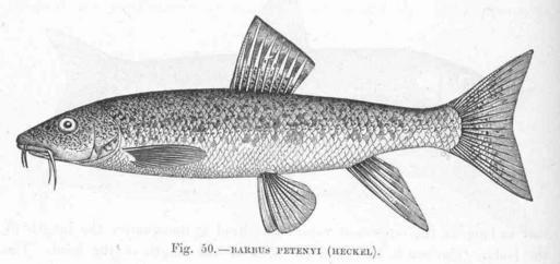 | Keywords: FMIB 48018 Barbus petenyi (Heckel).jpeg Barbus petenyi Heckel Subject Barbus Tag Fish 1886 Cite book Fresh-Water Fishes of Europe a History of their Genera Species Structure Habits and Distribution Seeley H G London England Cassell Company Limited 1886 Fig 50 Creator Harry Govier Seeley PD-UWASH-FMIB Institution University of Washington FMIB-source accession number 48018 Images from the Freshwater and Marine Image Bank to check Harry Seeley Barbus petenyi | ||||