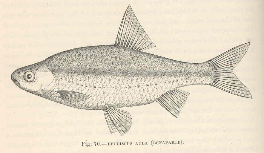 | Keywords: FMIB 48038 Leuciscus aula (Bonaparte).jpeg Leuciscus aula Bonaparte Subject Cyprinidae Leuciscus Tag Fish 1886 Cite book Fresh-Water Fishes of Europe a History of their Genera Species Structure Habits and Distribution Seeley H G London England Cassell Company Limited 1886 Fig 70 Creator Harry Govier Seeley PD-UWASH-FMIB Institution University of Washington FMIB-source accession number 48038 Images from the Freshwater and Marine Image Bank to check Harry Seeley Rutilus aula | ||||
