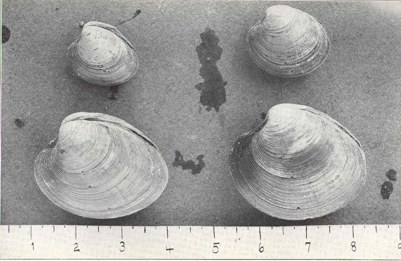 | Keywords: FMIB 48206 -Quahots- -.jpeg check categories 17 September 2015 2 Quahots These two sizes illustrate the sti ulating effect on growth of current which acts as a food carrier In each bet quahaugs of the same size were planted and allowed to remain for three years The larger quahaugs were planted in a box on the raft where the circulation of water was good; the smaller in the southeastern corner of the Powder Hole not 75 yards from the raft in shallow water among thick eelgrass which shut off all circulation Subject Northern quahog--Growth Shellfish culture Tag Shellfish 1912 Cite book Report Upon the Quahaug and Oyster Fisheries of Massachusetts Massachusetts Commissioners on Fisheries and Game Boston MA Wright Potter Printing Co 1912 Fig 52 State of Massachusetts Fish and Game Commission PD-UWASH-FMIB Institution University of Washington FMIB-source accession number 48206 Images from the Freshwater and Marine Image Bank to check State of Massachusetts Fish and Game Commission Shellfish farming |