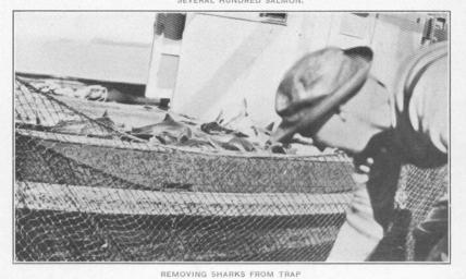 | Keywords: FMIB 49109 Removing Sharks from Trap.jpeg check categories 28 August 2015 4 Removing Sharks from Trap Subject Fish traps Bycatches Fisheries Sharks Tag Commercial Fisheries 1915 Cite book Report of Alaska Investigations in 1914 Jones E Lester Washington DC Government Printing Office 1915 page 53 Creator Ernest Lester Jones PD-UWASH-FMIB Institution University of Washington FMIB-source accession number 49109 Images from the Freshwater and Marine Image Bank to check Ernest Lester Jones Fish traps Selachimorpha Fisheries |