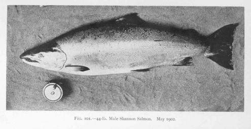 | Keywords: FMIB 49577 44-lb Male Shannon Salmon May 1902.jpeg check categories 2 September 2015 2 44-lb Male Shannon Salmon May 1902 Subject Salmon Tag Fish 1910 Cite book Life-History and Habits of the Saomon Sea-Trout Trout and Other Freshwater Fish Malloch P D London England Adam and Charles Black 1910 Fiig 101 Creator Peter Malloch PD-UWASH-FMIB Institution University of Washington FMIB-source accession number 49577 Images from the Freshwater and Marine Image Bank to check Peter Malloch Black and white photos of salmon |