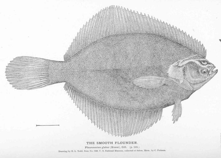 | Keywords: FMIB 50882 Smooth Flounder.jpeg check categories 7 September 2015 2 Smooth Flounder Pleuronectes glaber Storer Gill Subject Flatfishes Plauronectes Tag Fish 1884 Cite book Fisheries and Fishery Industries of the United States Section I Natural History of Useful Aquatic Animals Plates Goode George Brown Washington DC Government Printing Office 1884 Plate 45 Creator H L Todd PD-UWASH-FMIB Institution University of Washington FMIB-source accession number 50882 Images from the Freshwater and Marine Image Bank to check H L Todd Pleuronectes putnami |